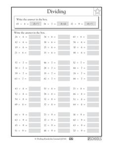 Here's a set of division problems to drill your scholars; they complete 48 horizontally aligned equations total. These problems are separated into four sections of 12 equations each: learners divide by six, seven, eight, and nine. Many...