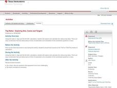 Learners investigate properties of the unit circle using sine, cosine and tangent. They analyze the answers to questions about the unit circle based on a right triangle.