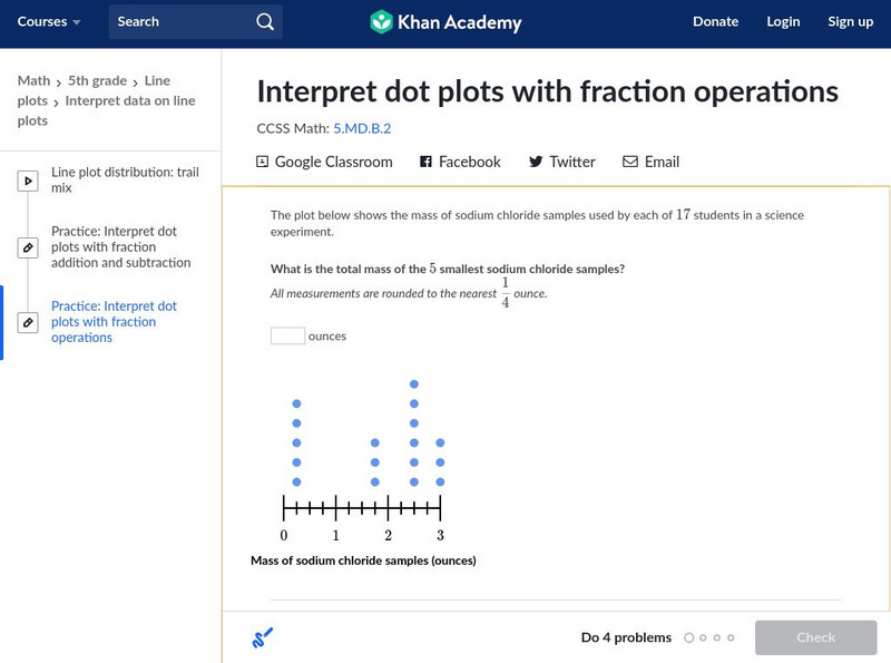 Khan Academy: Interpret Dot Plots With Fraction Operations