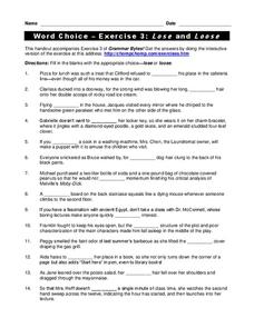 In this word choice learning exercise, students fill in blanks in a set of 20 sentences with the appropriate choice: lose or loose. Online version link available.
