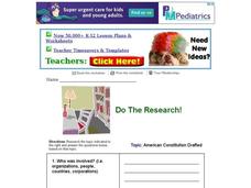 In this American Constitution worksheet, learners do research about the drafting of the Constitution of the United States. Students answer 4 general questions with information they have learned.