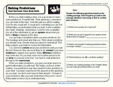 Read efficiently and effectively with a passage about making predictions and using headlines and visual aids as clues. After kids read a few paragraphs in the passage, they answer five comprehension questions on the side of the page.