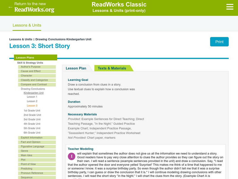 Read Works: Kindergarten: Three Lesson Unit: Drawing Conclusions