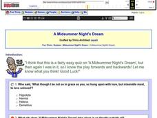 Your class may enjoy taking this short online quiz on A Midsummer Night's Dream to self-assess basic reading comprehension; however, its lack of rigor and authority precludes it from being a suitable class assignment.