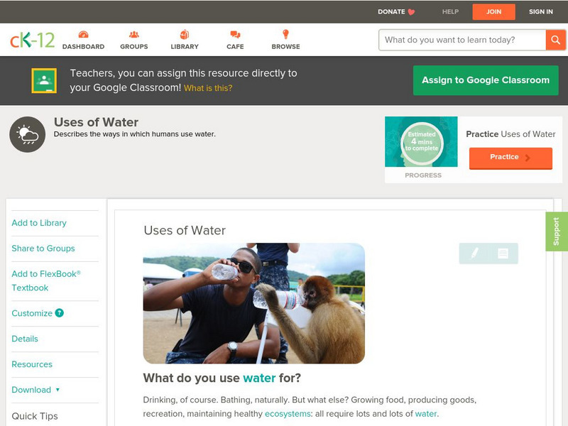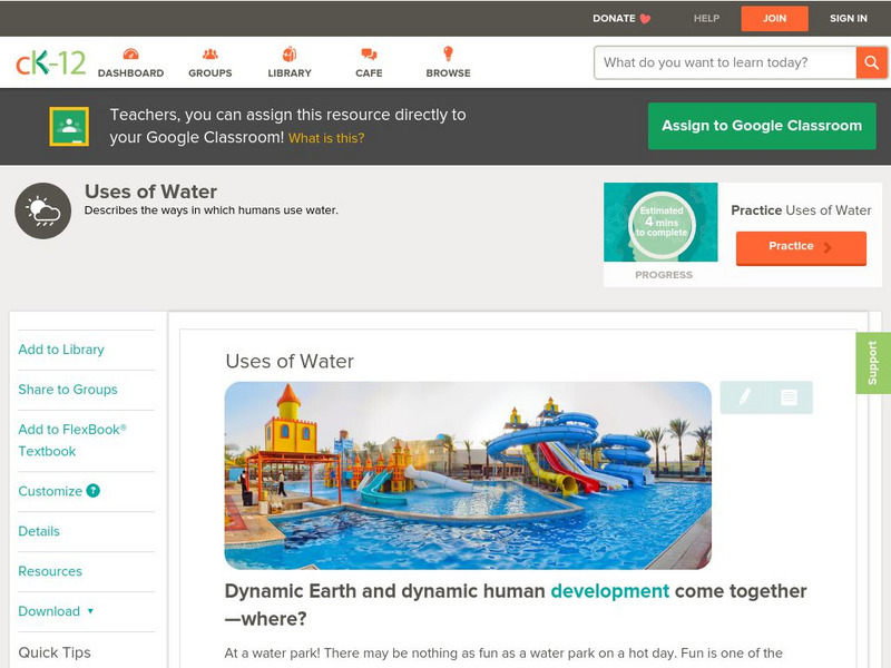 [Free Registration/Login may be required to access all resource tools.] Describes how humans use water today.
