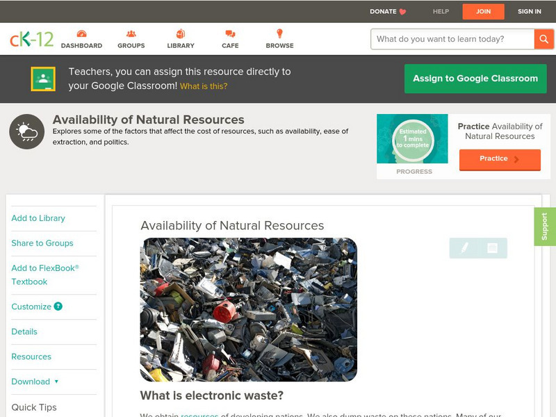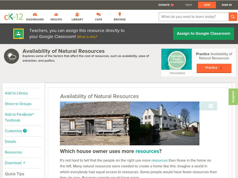 [Free Registration/Login may be required to access all resource tools.] Explores some of the factors that affect the cost of resources, such as availability, ease of extraction, and politics.
