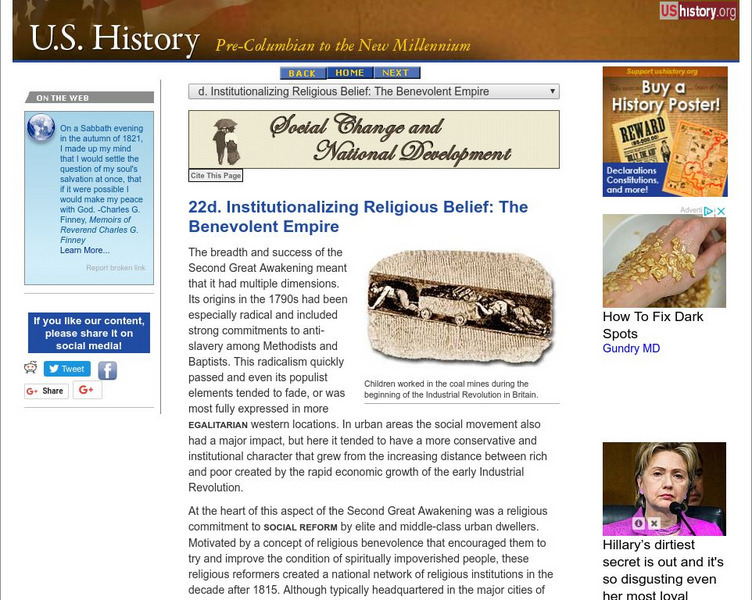U.s. History: Institutionalizing Religious Belief: The Benevolent Empire