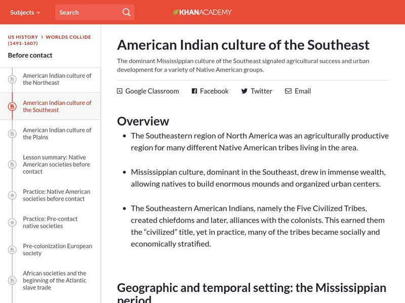 The Southeast Indian tribes were known for their agricultural success. Examine their farming practices, pottery, mound building traditions, and societal structure in the following summary. Also included are pictures, maps, critical...