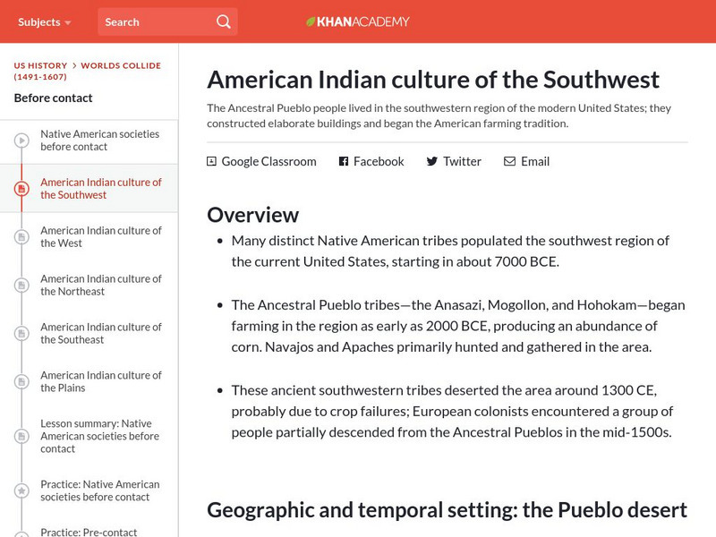 We can thank the Indian tribes from the Southwest for introducing us to corn. Corn was seen as a spiritual gift in Pueblo societies. Study more of the cultural characteristics of these tribes such as their irrigation system which allowed...
