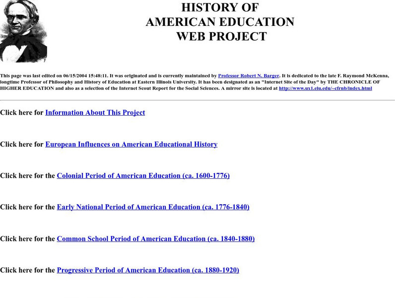 This site from the University of Notre Dame contains great information on the History of American Education. This particular page is maintained by one of the professors at the college and contains links to information on the subject.