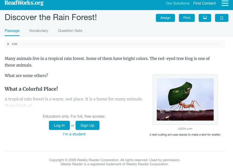[Free Registration/Login Required] An informational text about the rain forest. A question sheet is available to help students build skills in reading comprehension.
