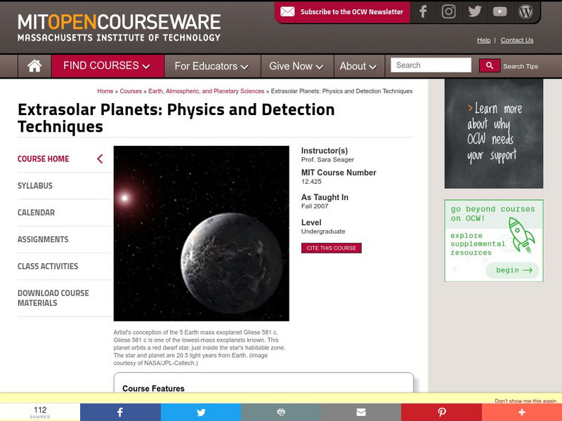 Mit: Open Course Ware: Courses: Extrasolar Planets: Physics and Detection