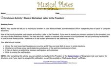 In this letter to the President learning exercise, learners write a letter to the President about earthquakes and volcanoes. Students include 4 bullet points in their letters.