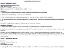 Students explain any perceived relationship between mineral resources and political/economic power. They test knowledge through puzzles and classroom activities and research different minerals and educate one another about their...
