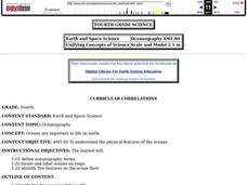 Fourth graders define new vocabulary associated with oceanography. They locate and label the four oceans. They also identify features of the ocean floor.