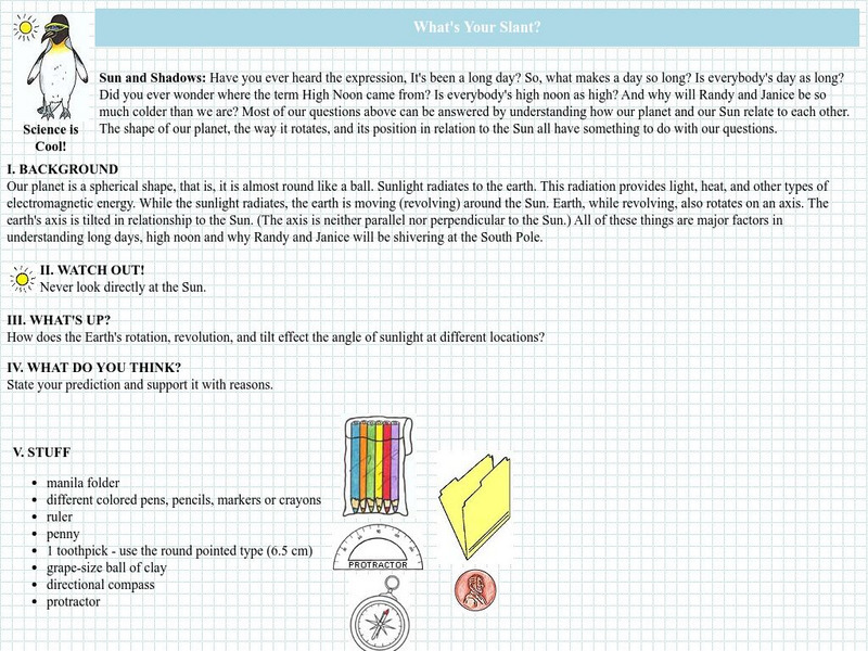 Students perform many inquiry activities related to Earth's orbit. Included are recording daily temperatures, observing the sun's path over several weeks, tracking sunrise and sunset times, and angle of sunlight. Diagrams make lessons...
