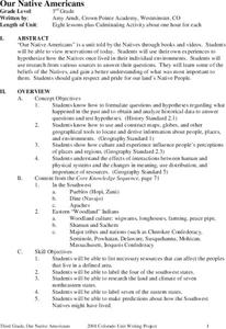 Students complete a unit of lessons on Native Americans. They label maps, list resources the Native Americans used in their daily lives, create an original short story, define key vocabulary, and develop a model of something that...