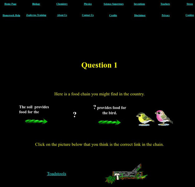 Answer these ten interactive questions about ecological feeding relationships by choosing the correct image that completes each food chain.