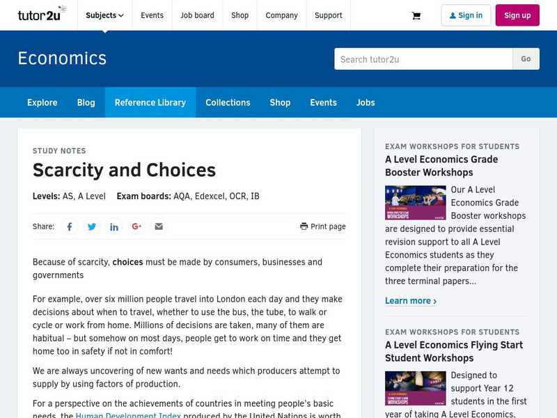 Tutor2 U: Economics: Scarcity and Choices