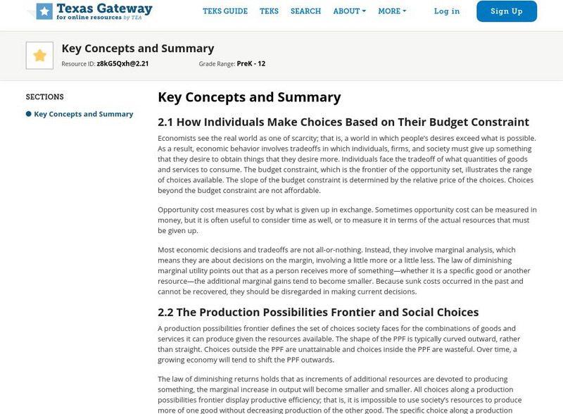 Texas Gateway: Chapter 2: Choice in a World of Scarcity: Key Concepts & Summary