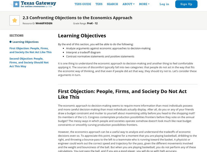 Texas Gateway: Macroeconomics: Confronting Objections to the Economics Approach