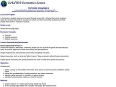 Scarcity of resources is a fundamental economics concepts that kids need to understand. You'll use a large bag of popcorn to demonstrate this concept. Have the class come up row-by-row to fill their snack bags with popcorn. By...
