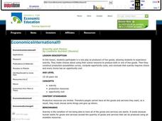 Students participate in a role play as producers of two goods, allowing students to experience scarcity. They make choices about using their scarce resource to produce both or one of two goods. Then they construct...