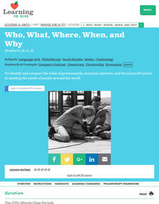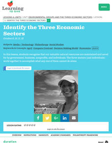 Students identify the three economic sectors found in the United States. They organize different foundations into these three categories. They examine why each sector is necessary in our society.