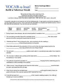 In this vocabulary worksheet, students decipher which word would complete the sentence best. All words begin with the letter "G."