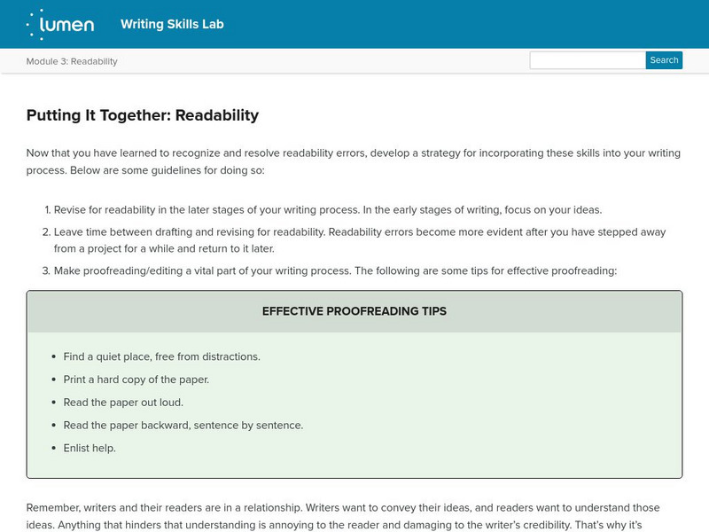 This readability lesson focuses on developing strategies for proofreading and editing your writing for readability errors such as grammar and punctuation.
