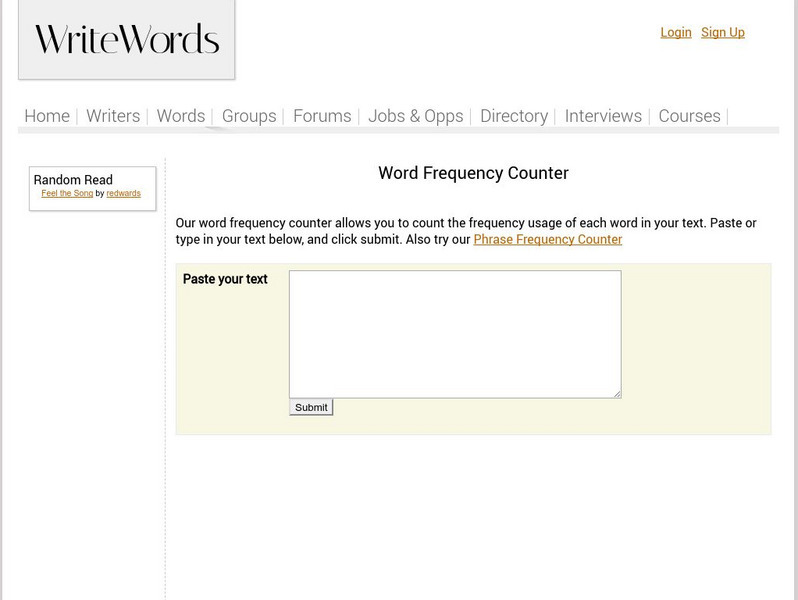 A simple writing tool where one can paste in a piece of text, and count how many times each word appears in the text. A good tool to use to avoid over-using words.