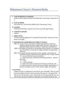 Hit a home run with your lessons. A two-part activity has learners explore quadratic equations that model the path of a baseball. They see how changing the initial speed of the ball affects its maximum height, maximum horizontal...