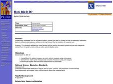 Students review the units of the metric system, convert from the US system of units of measure to the metric system, and estimate measures before converting between the two systems of measurement.