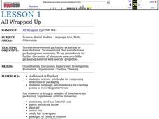 Students explore packaging. In this cross-curriculum lesson, students bring in samples of food packaging and identify the packaging as natural or manufactured.