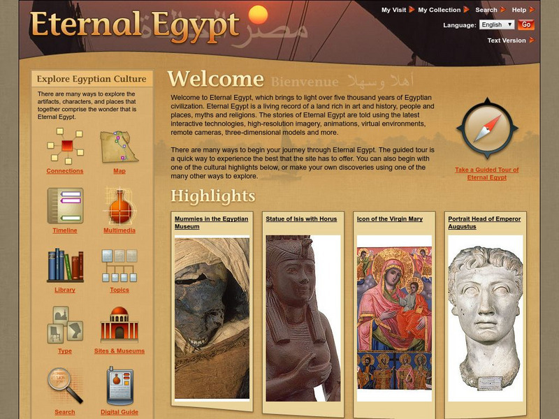 Enjoy the sheer beauty of this site. Eternal Egypt will intrigue students with the interactivity offered on subjects such as artifacts, places, culture, and people of ancient Egypt. This site is like a well-done textbook come to life....