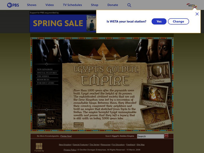 PBS provides a fascinating glimpse of Egypt's New Kingdom, arising "more than one thousand years after the pyramids were built." Concentrating on the lives of seven pharaohs (one of them a woman), the site includes a timeline, lesson...