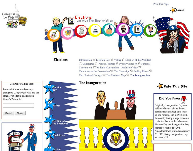 Here's a great presentation on Elections for younger kids that includes information on Voting, Candidates, Conventions, the Campaign, and other topics concerning elections.
