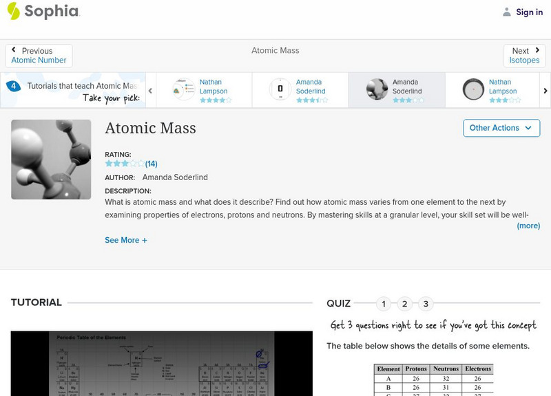 This lesson explains what is represented by the atomic mass, and how it varies from one element to the next. It is 1 of 4 in the series titled "Atomic Mass."