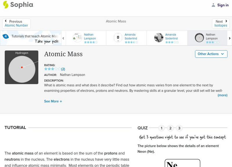 This lesson explains what is represented by the atomic mass, and how it varies from one element to the next. Module includes a slideshow and a quiz.