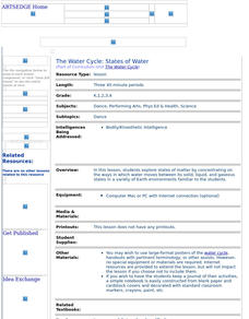 Elementary schoolers explore states of matter by concentrating on the ways in which water moves between its solid, liquid, and gaseous states in a variety of Earth environments. Learners interpret these movements through dance. The...