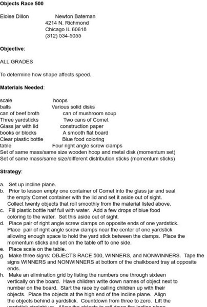 In this lesson plan grab a slope and different objects. Roll the objects down the slope and record which is the fastest. Students analyze the features of the objects that make them slow or fast.