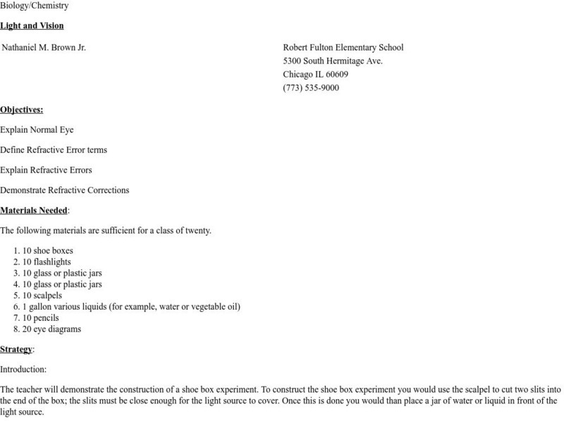 Lesson plan should be used for intermediate students. Students work in pairs or groups to create a shoe box that will bend light.