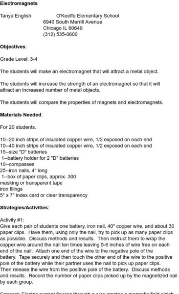 This lesson helps students to understand the difference between magenets and electromagnets. They will also create an electromagnet.