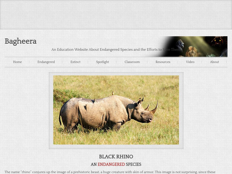 This site takes a look at the physical characteristics and habitat of the black rhinoceros. Special attention is given the causes of endangerment of this animal, as well as current conservation efforts. Additional learning exercises are...