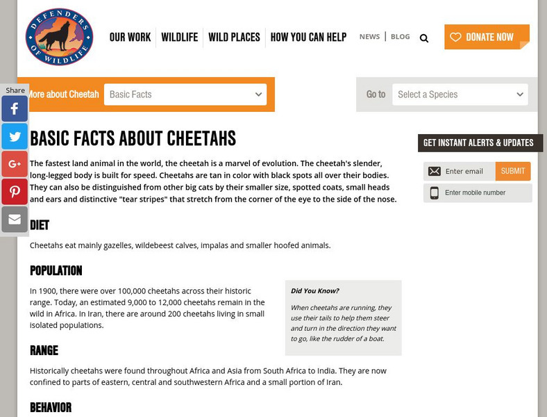 Get the facts about cheetahs! What do they eat? Where do they live?