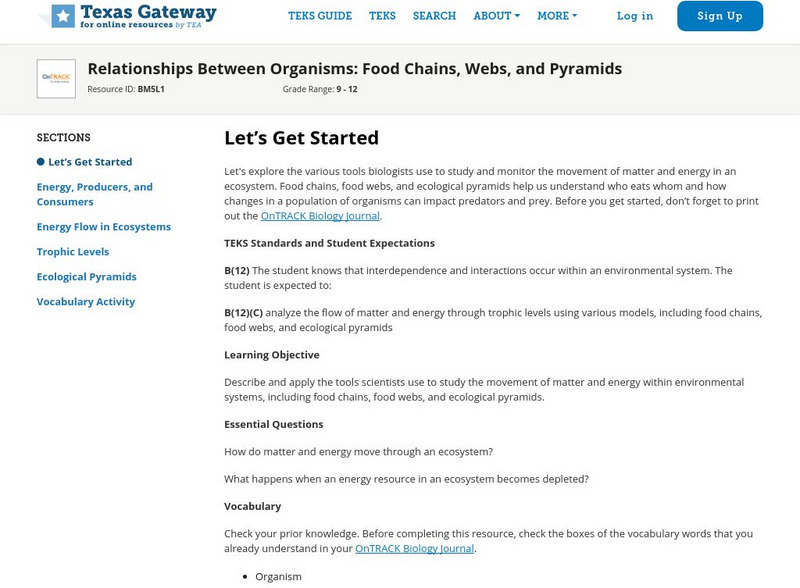 Texas Gateway: Organism Relationships: Food Chains, Webs, Pyramids