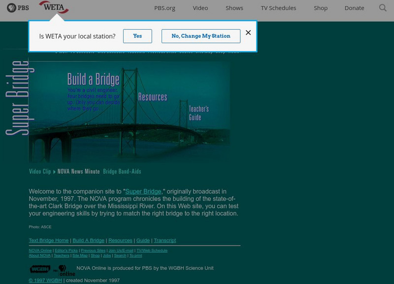 Online companion to a NOVA program on bridges. Includes teacher resources, including a class activity through which students construct and test their own bridge,