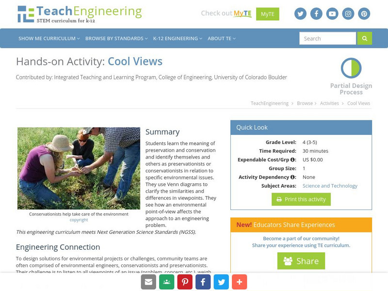 In this activity, students will learn the meaning of preservation and conservation and identify themselves and others as preservationists or conservationists in relation to specific environmental issues. They will understand how an...