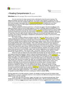 Challenge your eleventh and twelfth graders with this reading passage. Whether you're preparing for upcoming state or school-wide testing, or you're just trying to give your class reading comprehension practice, print this for your...