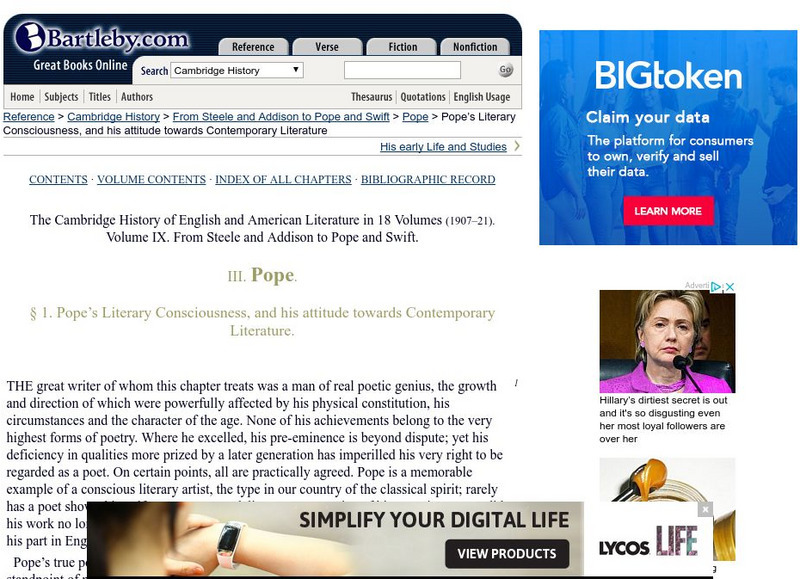 Bartleby.com: Pope?s Literary Consciousness . . .